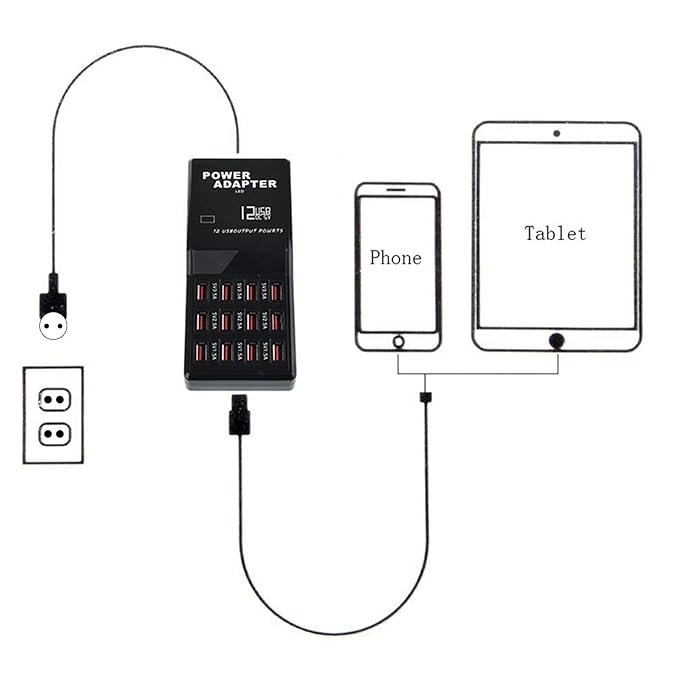 Charge 12 Devices Simultaneously: Utilizes smart port technology to maximize compatibility with various devices including Android, iOS, and others, allowing for up to 12A charging speed across all 12 ports.