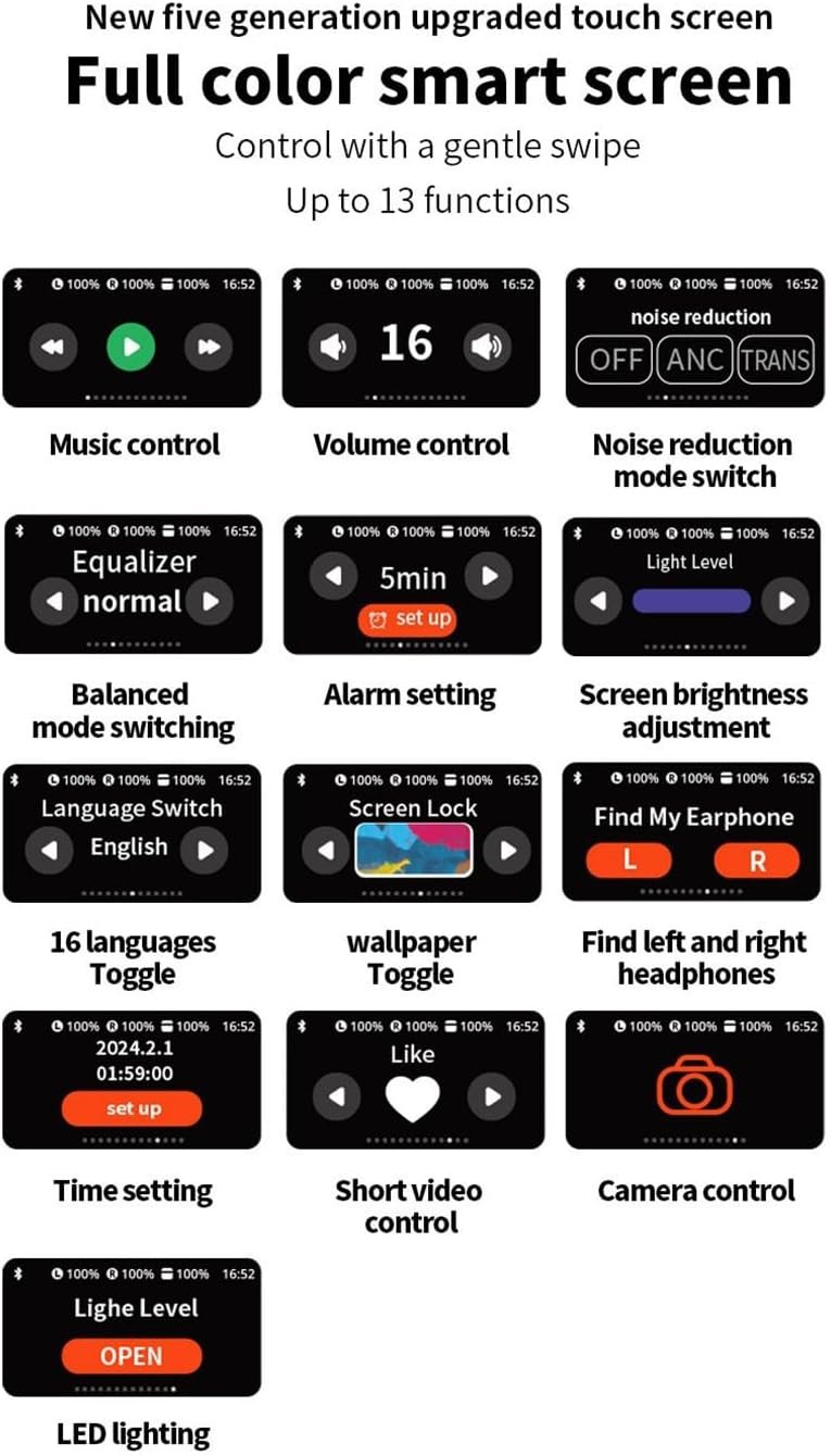 The stylish charging case comes with a color LED digital display, showing real-time battery status. With touch control functionality, you can easily manage music, calls, and voice assistants without touching your phone.