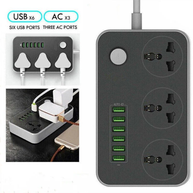 – 💎 High-end design with 3 Universal outlets and 6 smart USB ports.