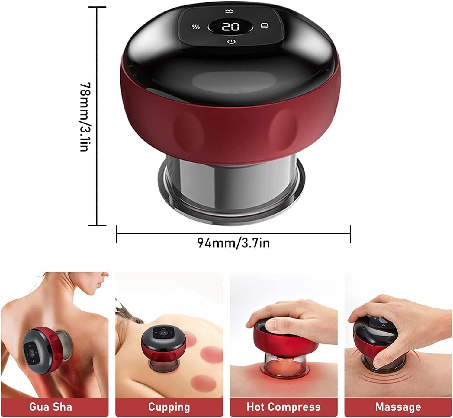 💆 3-in-1 Therapy – cupping, red light, and gua sha massage in one device