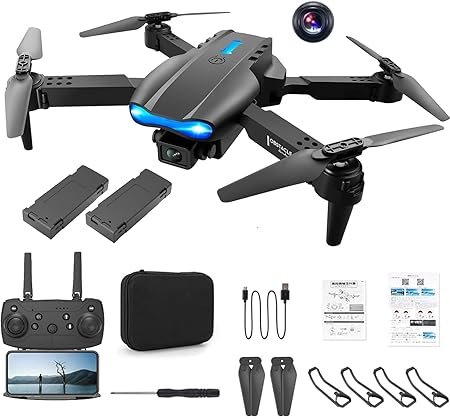 E99 Foldable Camera Drone – WiFi FPV Live Video, Remote Control Aircraft with Storage Bag & 2 Batteries (Black)