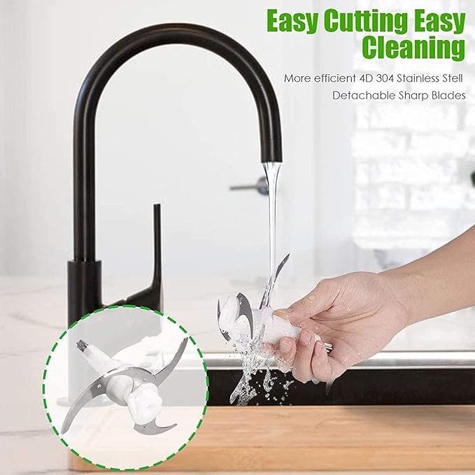 🔪 Quad Stainless Steel Blades – ensures fine and consistent cutting