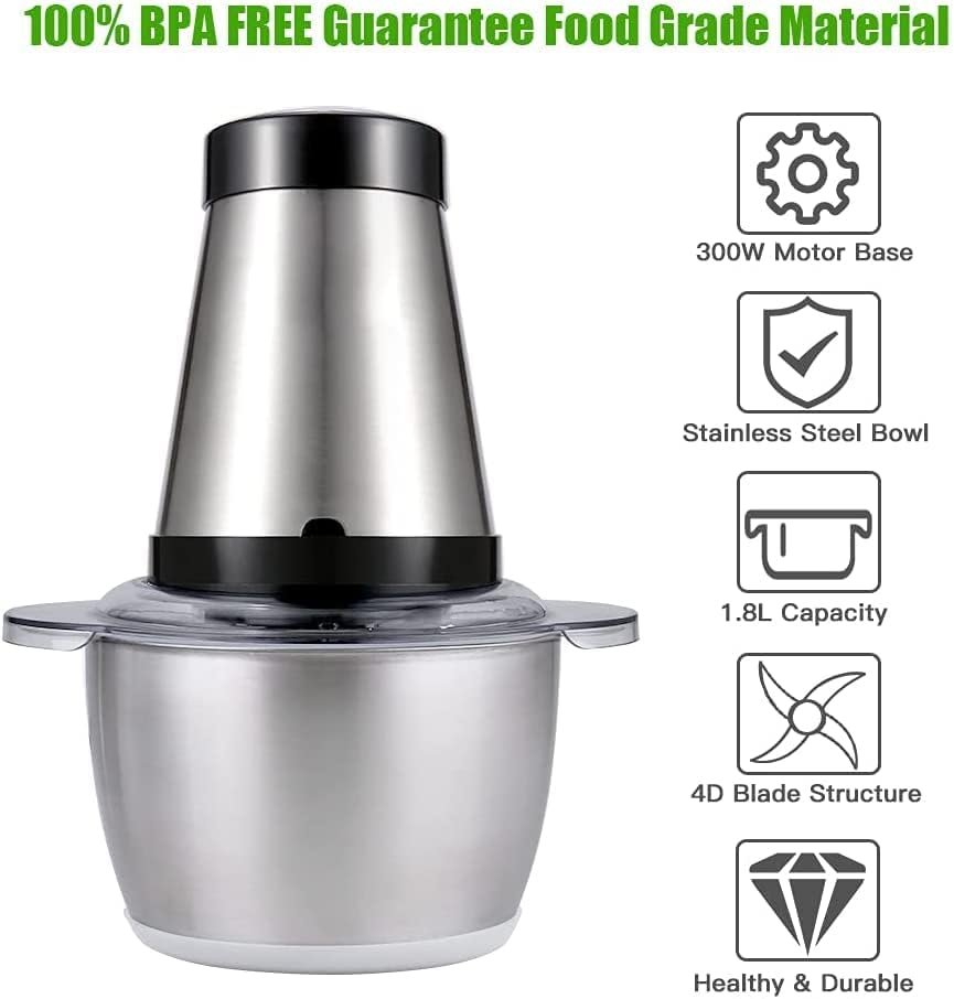 Designed with a 2L stainless steel bowl and quad stainless steel blades, it delivers fast and even chopping, grinding, and mixing. With dual speed control (fast & slow), you can easily handle different types of ingredients—from vegetables and fruits to nuts and meat.