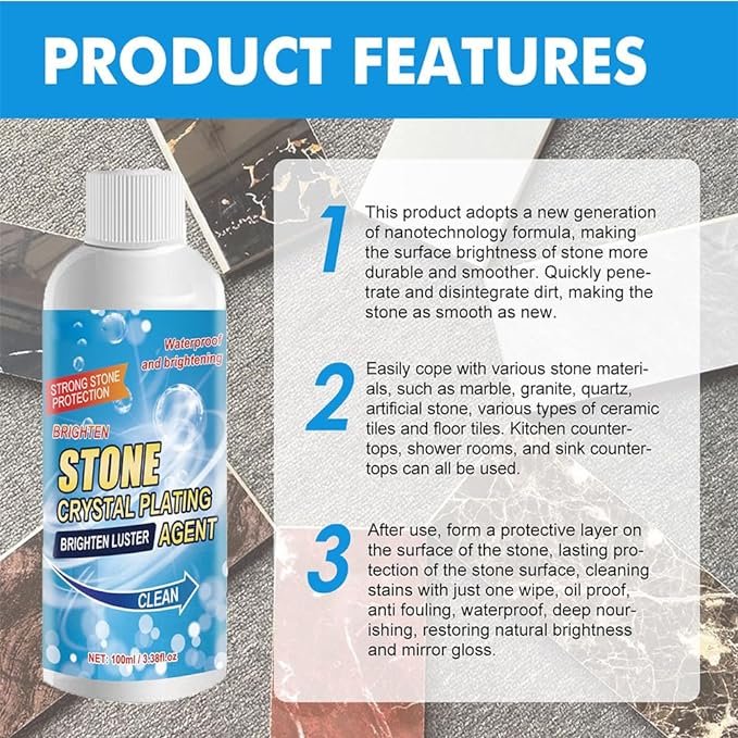 • ✨ Stone Crystal Plating Agent: The best choice for cleaning natural stone floors, ensuring they remain in pristine condition and reducing the need for frequent maintenance in the long run!