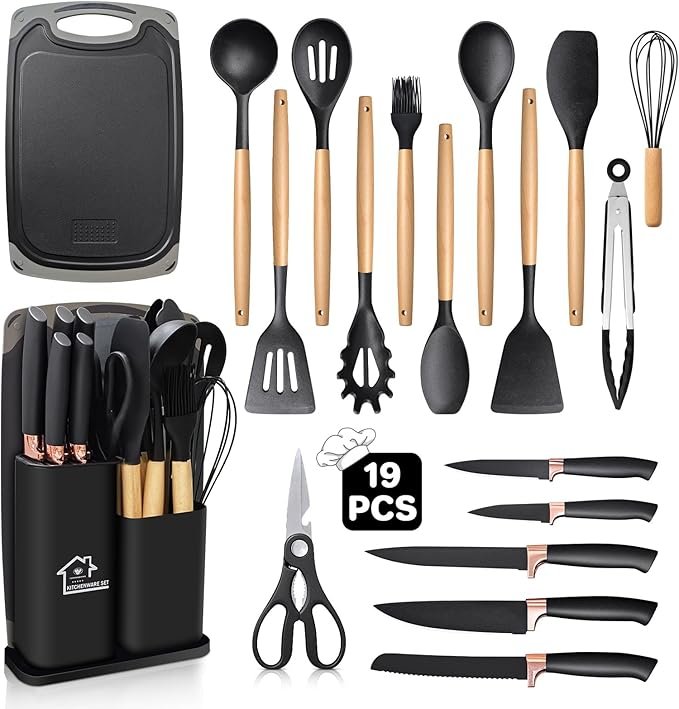 🍴 19-Piece Complete Set – spatulas, spoons, ladles, tongs, whisk & more