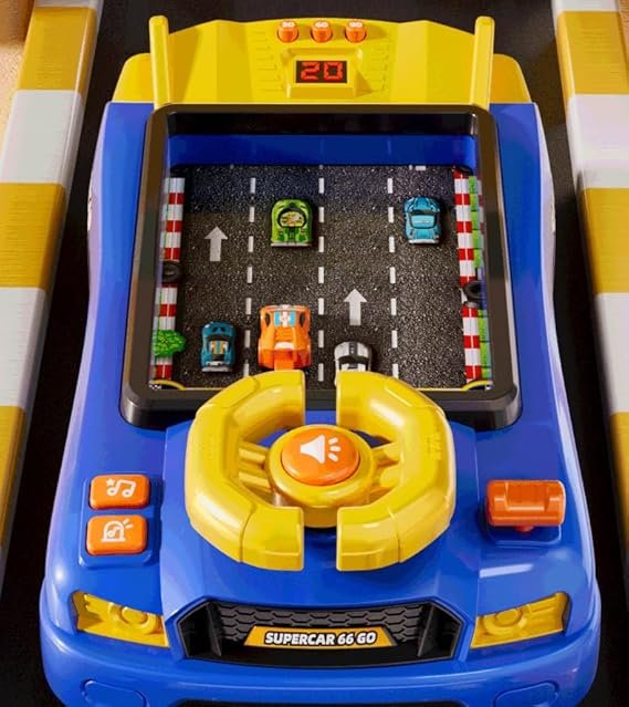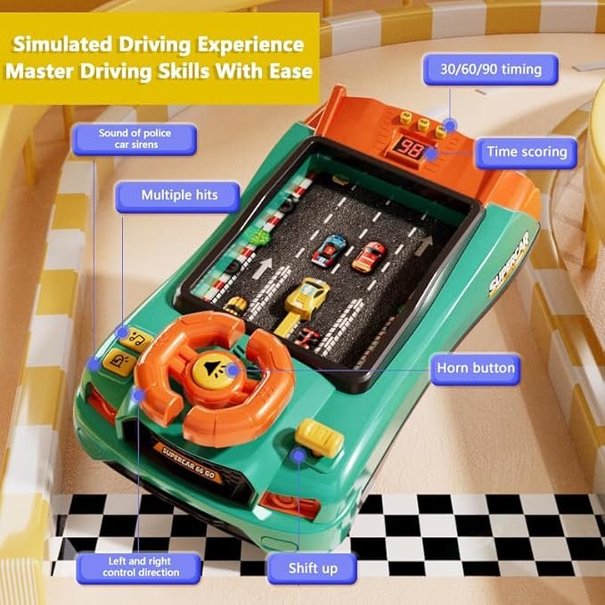 With its realistic steering wheel controls, built-in music, and countdown play mode, this racing simulator is perfect for kids who love cars and racing games. The vibrant red design and engaging gameplay encourage imagination, coordination, and family playtime.