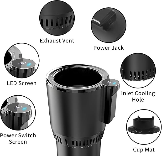Yesinaly 2-in-1 Smart Car Cup Cooler & Heater – LED Display, Touch Control, Fits Car Cup Holder (Black)